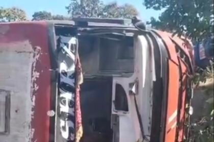 छिंदवाड़ा- नरसिंहपुर नेशनल हाईवे पर स्लीपर बस पलटी…