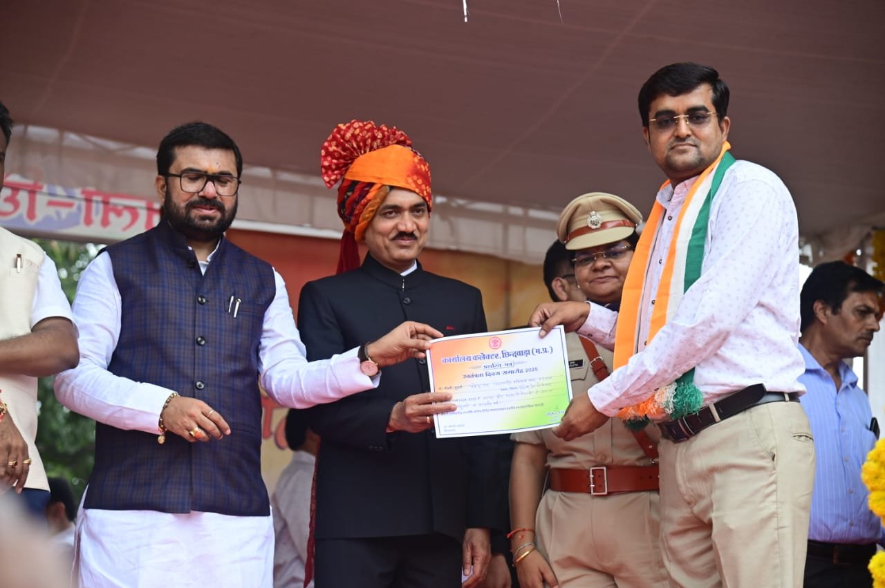 छिंदवाड़ा(चौथा स्तंभ )79वें स्वतंत्रता दिवस के अवसर पर ईटीवी भारत के सीनियर रिपोर्टर और कंटेंट एडिटर महेंद्र राय को जनसरोकारों की पत्रकारिता के लिए सम्मानित किया गया। यह सम्मान उन्हें सरकार और शासन की योजनाओं को जनता तक सफलतापूर्वक पहुंचाने के सराहनीय कार्य के लिए दिया गया।