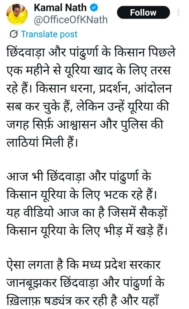“छिंदवाड़ा-पांढुर्णा में यूरिया की कोई कमी नहीं है।” जबकि हकीकत यह है कि छिंदवाड़ा-पांढुर्णा का हर एक किसान यूरिया के लिए दर-दर की ठोकरें खा रहा है। सुबह 3 बजे से लाइन में खड़ा हो रहा है, लेकिन यूरिया नहीं मिल रहा।