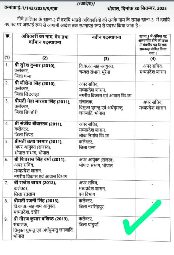 मध्य प्रदेश में बड़ा प्रशासनिक फेरबदल, कई जिलों के बदले कलेक्टर…