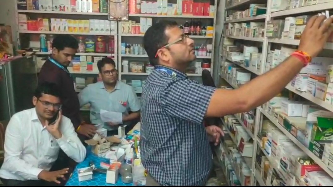 लगातार मेडिकल स्टोर के रिकॉर्ड की जांच जारी एवं संदिग्ध दवाईयो की सैंपलिंग जारी