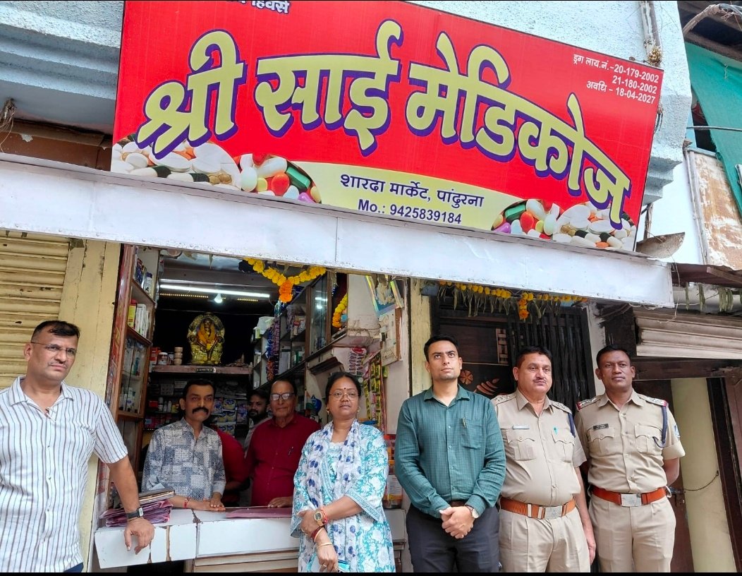 जांच के दौरान पांढुर्णा नगर के प्रमुख मेडिकल स्टोर्स श्री साई मेडिकोज़ (शारदा मार्केट), माँ जय भवानी मेडिकल स्टोर्स (गुजरी चौक), मोनू मेडिकल स्टोर्स (गुजरी चौक), नरेन्द्र मेडिकल एवं जनरल स्टोर्स (गुजरी चौक), सतीजा मेडिकल स्टोर्स, वैष्णवी मेडिकल स्टोर्स एवं प्रेम मेडिकल स्टोर्स (शिवाजी चौक) की जांच की गई।