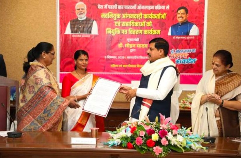 - मुख्यमंत्री डॉ. यादव ने प्रतीक स्वरूप तीन नवनियुक्त आंगनबाड़ी कार्यकर्ताओं और सहायिकाओं को नियुक्ति-पत्र प्रदान किए।
