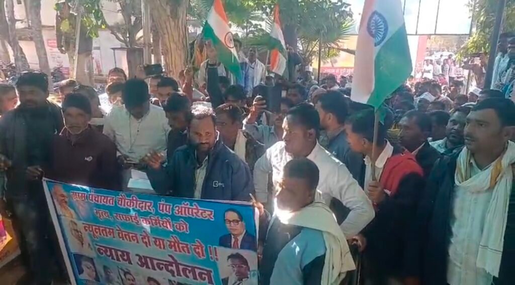 मप्र सरकार की ओर से घोषित न्यूनतम वेतन (अकुशल के लिए) 12,500 रुपए है, जो हर काम करने वाले कर्मचारी श्रमिक को मिलना ही चाहिए क्योंकि यह न्यूनतम वेतन है, ग्राम पंचायतों में कार्यरत चतुर्थ श्रेणी कर्मचारी को नहीं दिया जाता है। इसी सवाल को लेकर प्रदेश के हजारों चौकीदार, पंप आपरेटर, भृत्य, सफाई कर्मचारी सोमवार, 5 जनवरी 2026 से भोपाल में विकास भवन पर धरना करने जा रहे हैं जो मंगलवार 6 जनवरी 2026 तक चलेगा।