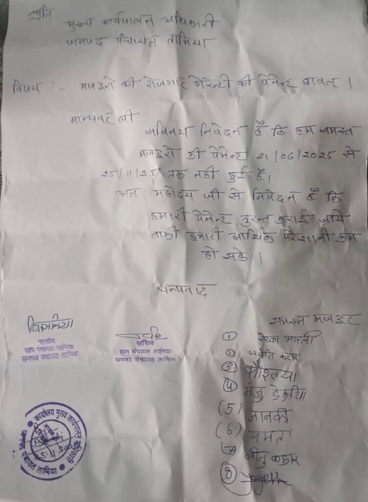 मनरेगा मजदूरों को 7 माह से मजदूरी नहीं मिलीः ग्राम पंचायत तामिया का है मामला, दो दर्जन गरीबों ने की शिकायत