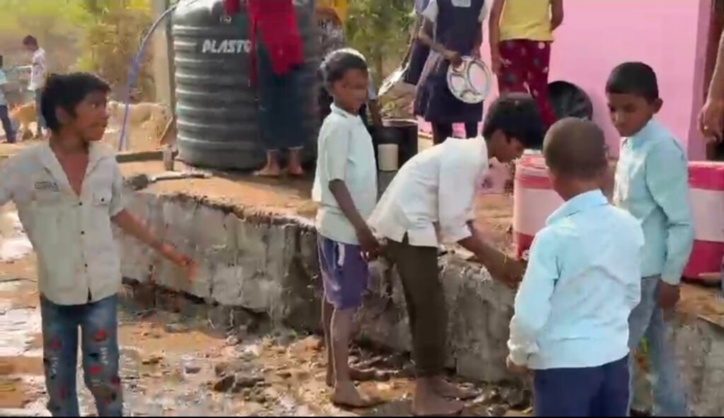 शिक्षा के मंदिर में छोटे छोटे बच्चों के हाथों में कलम की जगह… धुलवाए जा रहे बर्तन…?