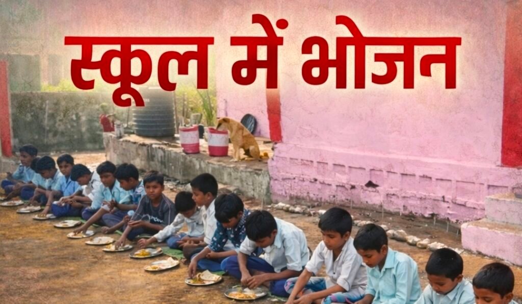 स्कूल परिसर के ग्राऊंड में बैठाकर खिलाएं जरा बच्चों को मिड डे मील…?